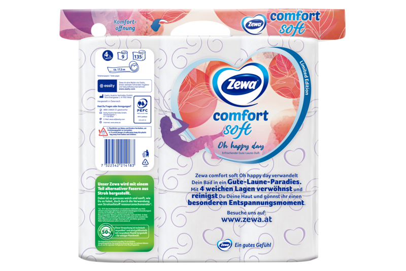 Die limitierte Edition von Zewa comfort soft ist als 9 Rollen Packung à 135 Blatt verfügbar.