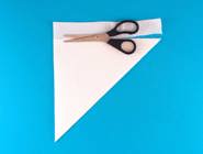 Nejprve vystřihněte z papírové utěrky čtverec. Položte jej na stůl a přeložte napůl, aby vznikl obdélník, následně opět napůl do čtvercového tvaru.