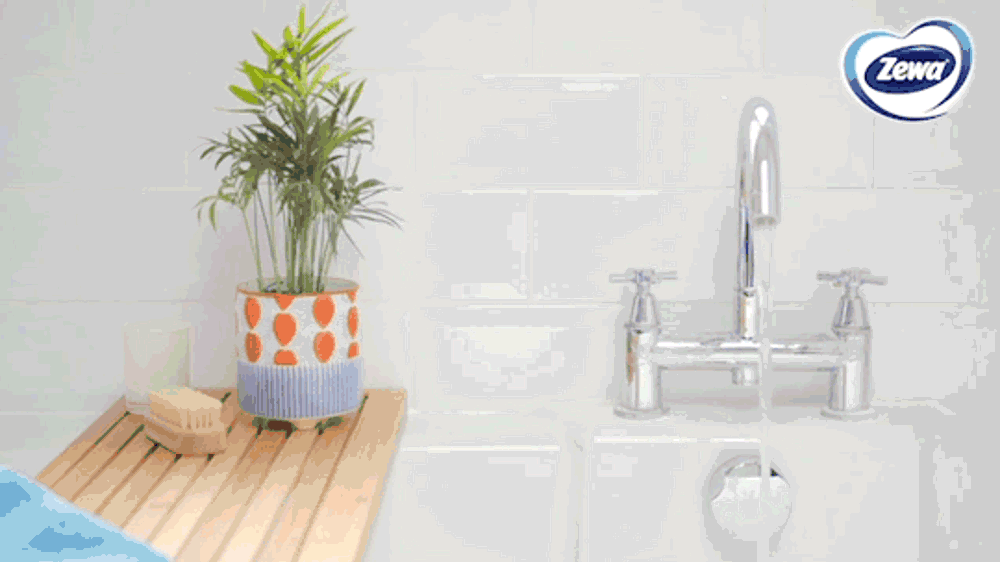 - Vedd le a „pakolást”, és töröld le a vízkő maradékát egy friss, benedvesített papírtörlővel. A Zewa Wisch &Weg akkor is egyben marad, ha áztatod, dörzsölöd, sikálod.