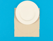 În continuare, taie și aplatizează cealaltă cutie goală de șervețele faciale Zewa Kids. Așază o farfurie plată în centru, trasează în jurul ei și decupează forma.